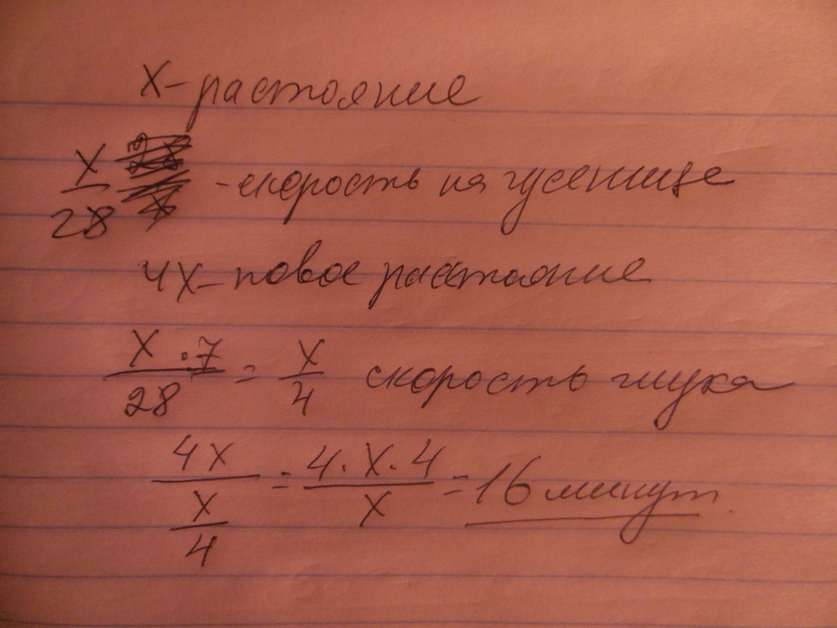 Муравей проехал на гусенице некоторое расстояние за 28 минут. За сколько минут муравей проедет на жуке расстояние в 4 раза большее,если скорость жука в 7 раз больше скорости гусенице.