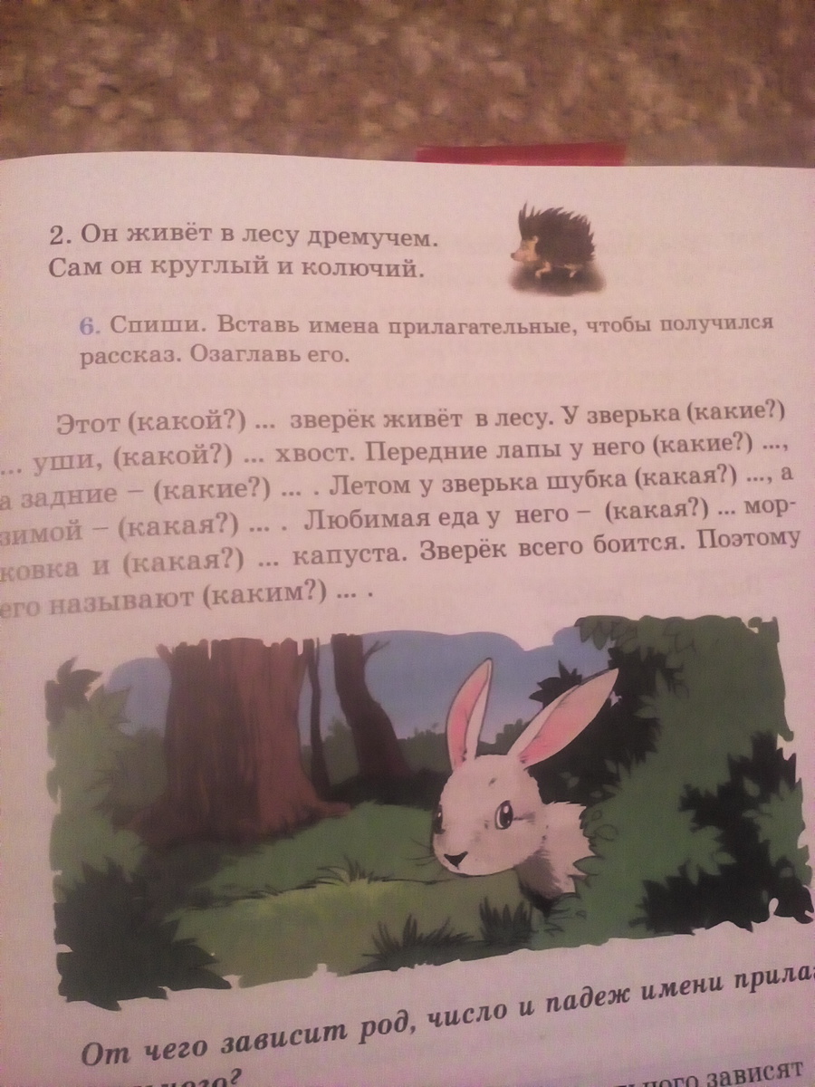 Этот пушистый зверёк живёт в лесу. У зверька большие уши, маленький хвост. Передние лапы у него слабые, а задние - сильные. Летом у зверька шубка тонкая, а зимой - толстая. Любимая еда у него - свежая морковка и свежая капуста. Зверёк всего боится. Поэтому его называют трусливым.