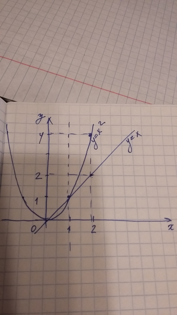 В точке х=1 значения функций у=х и у=х² совпадают