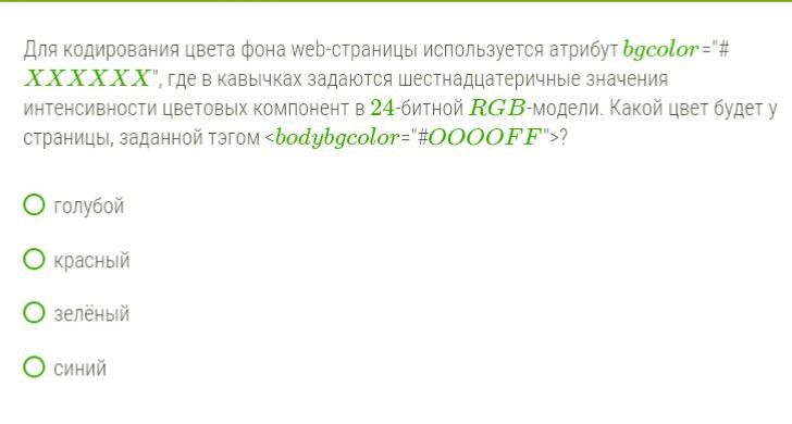 Шестиразрядный код bodybgcolor имеет значение разрядов: RRGGBB, где RR - количество красного (Red) цвета, GG - количество зеленого (Green) цвета и BB - количество синего (Blue) цвета. Значения указываются двумя шестнадцатиричными цифрами в диапазоне от 00 до FF (0-255 десятичное).