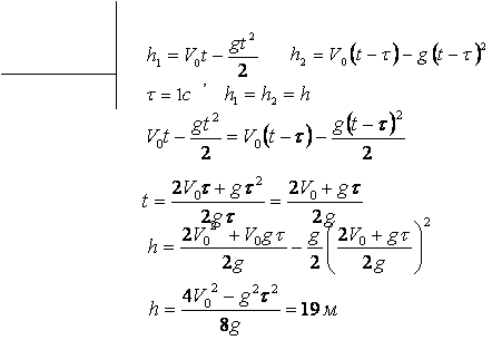 Вертикально вверх с начальной скоростью 20 м/с брошен камень.Через 1 с после этого брошен вертикально второй камень с такой же скоростью.На какой высоте встретятся камни ?