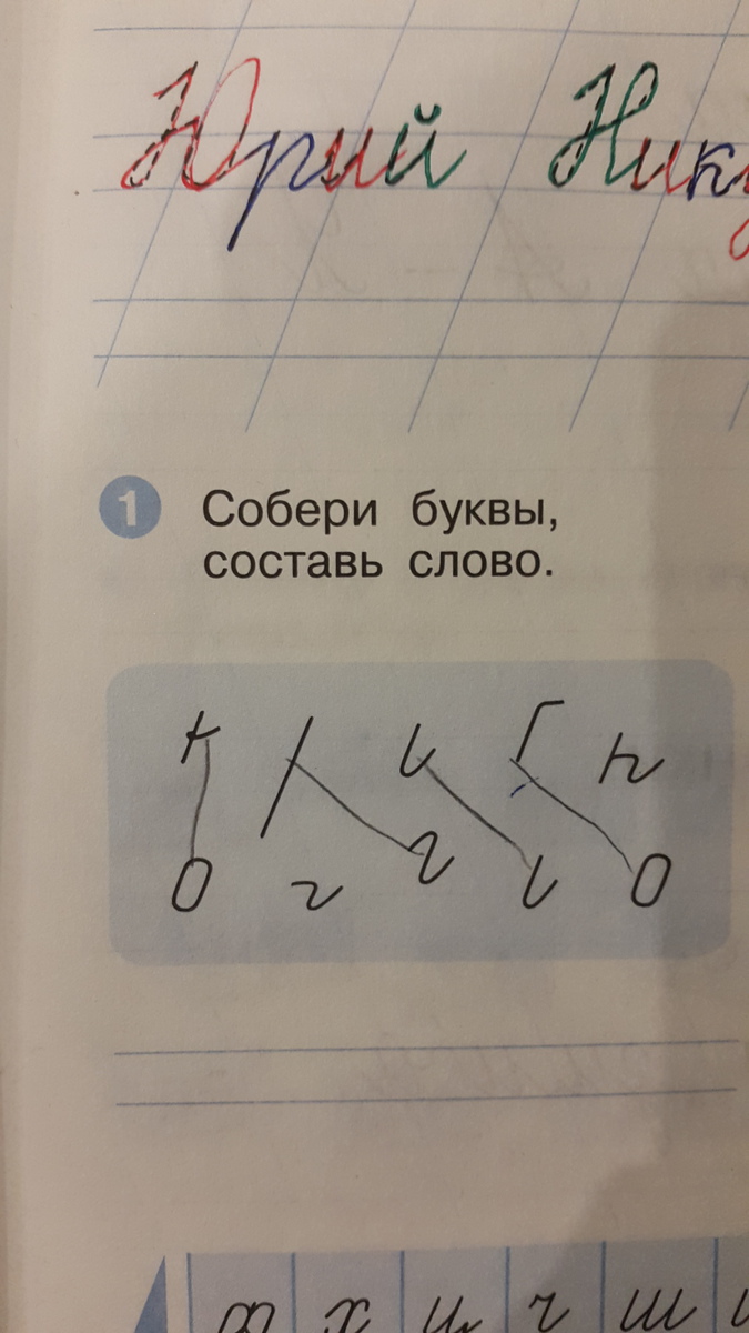 если бы не повтор одного элемента (второй слева, нижний ряд), тогда получается слово "брюки"