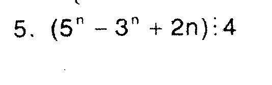 Т.к. 5^k-3^k+2k кратно 4 по пункту 2, 4(5^k) кратно 4, 2(3^k+1) кратно 4, то утверждение (5^k-'3^k+2k)-2(3^k+1)+4(5^k)=5^(k+1)-3^(k+1)+2k+2 кратно 4' - верно. Значит, согласно принципу математической индукции, утверждение '5^n-3^n+2n кратно 4' - верно.