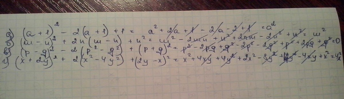 Г). (х+2y)²+2*(x²-4y²)+(2y-x)². = x²+4xy+4y²+2x²-8y²+4y²-4xy+x² = 4x²