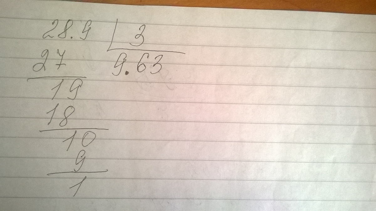 28.9/3=? ответ знаем 9.93 но надо подробно,у нас неполучается