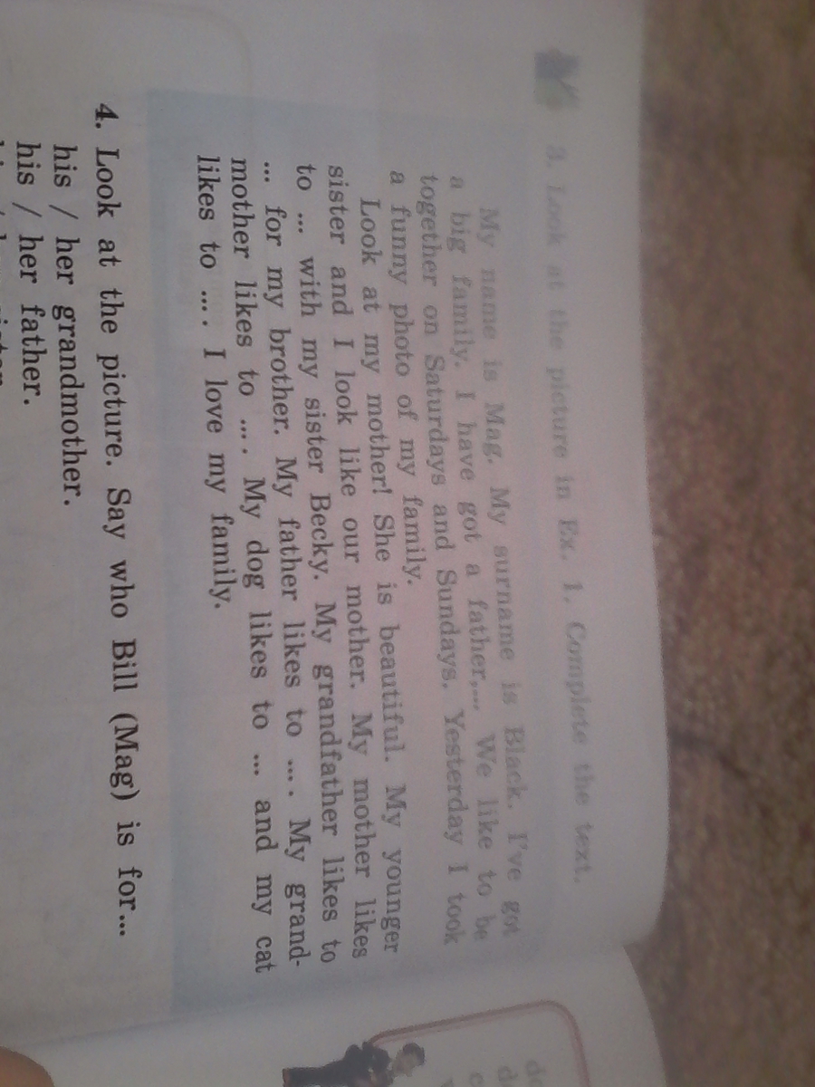 1.mother, sister, grandfather,brother,grandmother,a dog, a cat