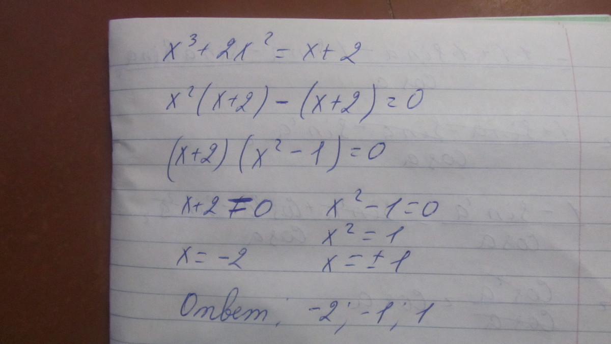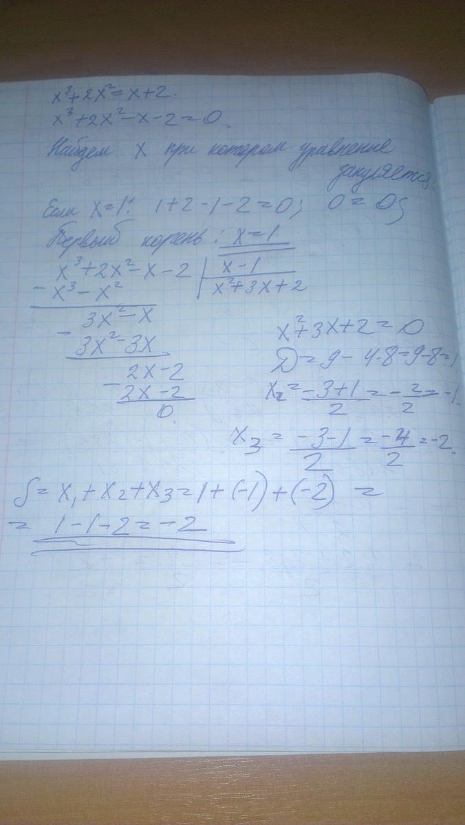 Очень простое уравнение. Для начала находишь корень, при котором уравнение обращается в ноль. Методом подбора. Далее, делишь "уголком", получаяя квадратное уравнение, у которого два корня.