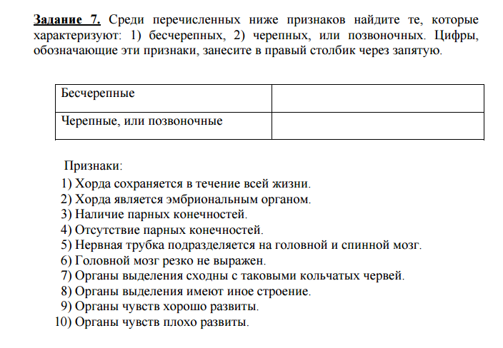Определить бесчерепных и позвоночных. СРОЧНО!
