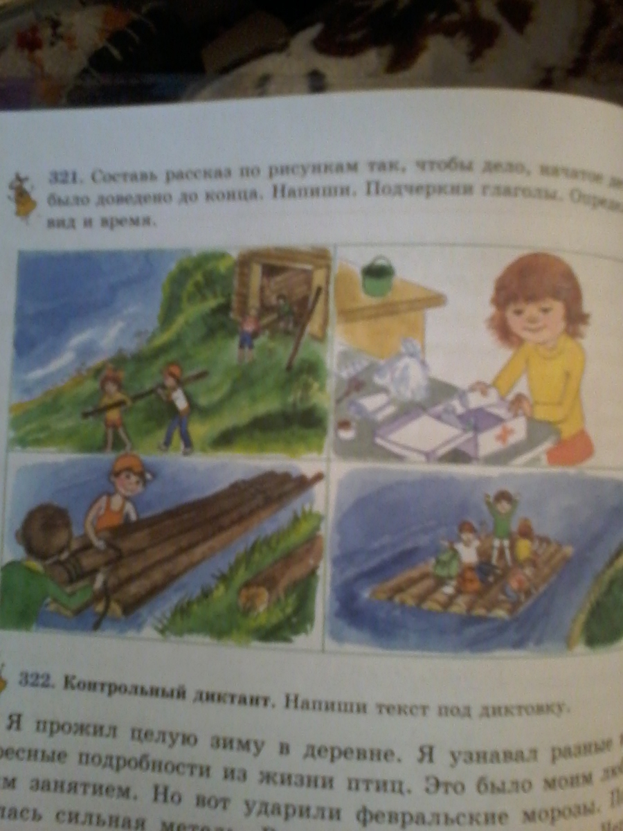 История произошла летом. Во время каникул. Ребята решили построить плот. Они начали перетаскивать бревна из сарая.Один из мальчишек ( Игорь) поранился. Катя побежала за аптечкой.Оказалось,что в пальце Игоря-заноза от бревна.Катя ловко вытащила ее.Помазала йодом и перебинтовала.Так она оказала первую помощь.Игорь поблагодарил подругу и продолжил работу.Ребята вместе построили плот.Теперь они могут переплавляться по реке.