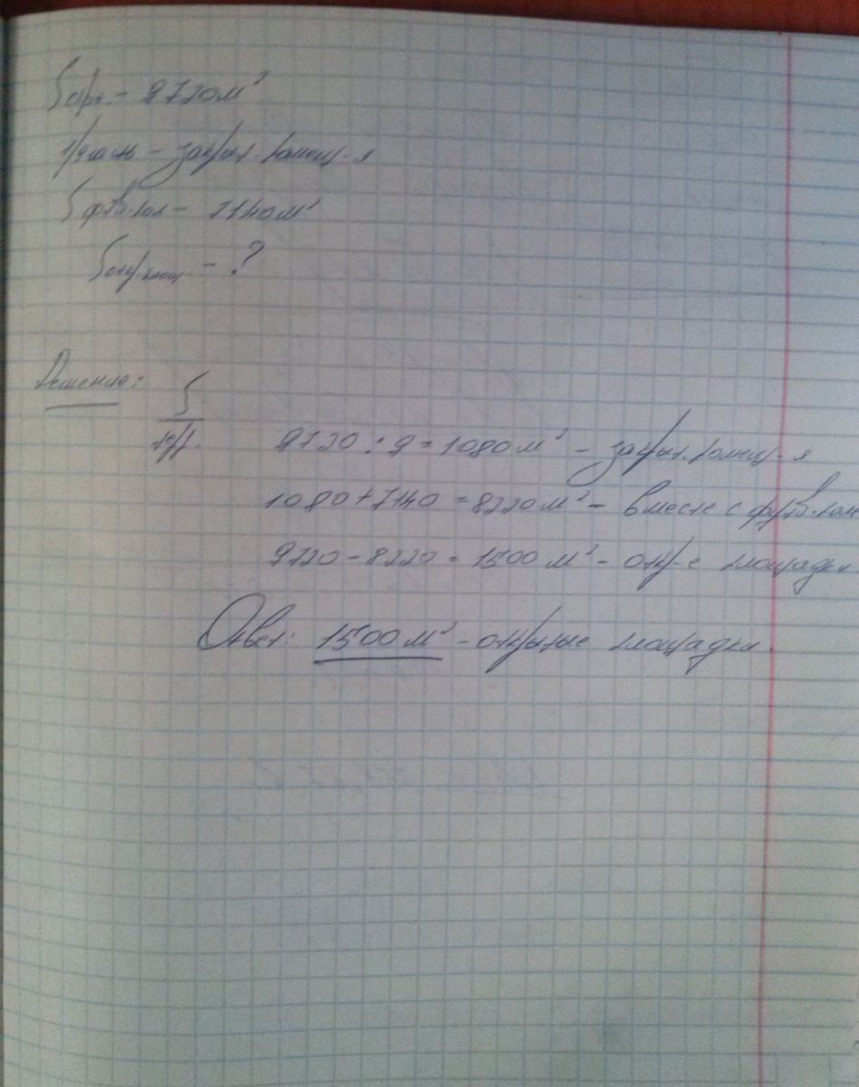 Площадь споркомплекса 9720 метров в квадрате,Девятую часть всей территории занимают закрытые помещения,футбольное поле-7140метров в квадрате,а остальные-открытые площадки.Какую площадь занимают открытые площадки?