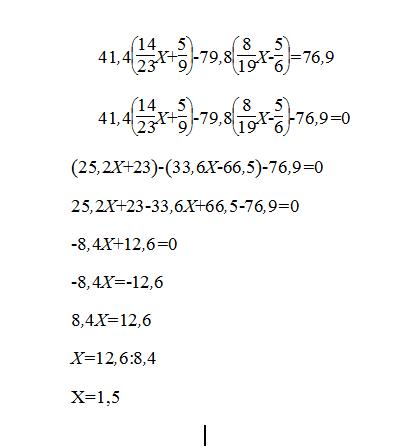41,4( 14/23х+5/9)-79,8(8/19х-5/6)=76,9