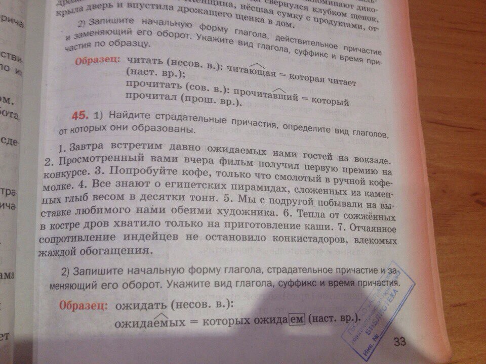 Страдательные причастия: ожидаемых - несовер. вид, смолотый - несовер. вид, сложенных - совер. вид, любимого - несовер вид, сожжённых - совер. вид.