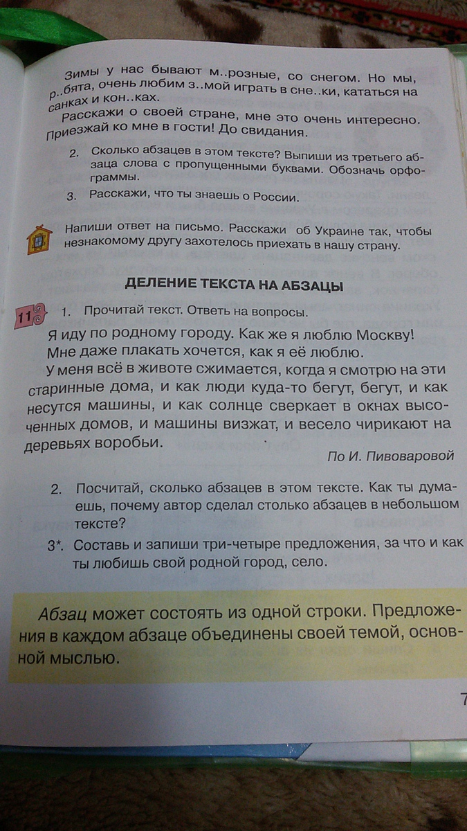 В тексте-три абзаца.В каждом абзаце-своя мысль.