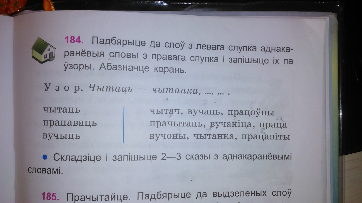 вучыць-вучань,вучаница,вучоны .корни чыт,прац,вуч)