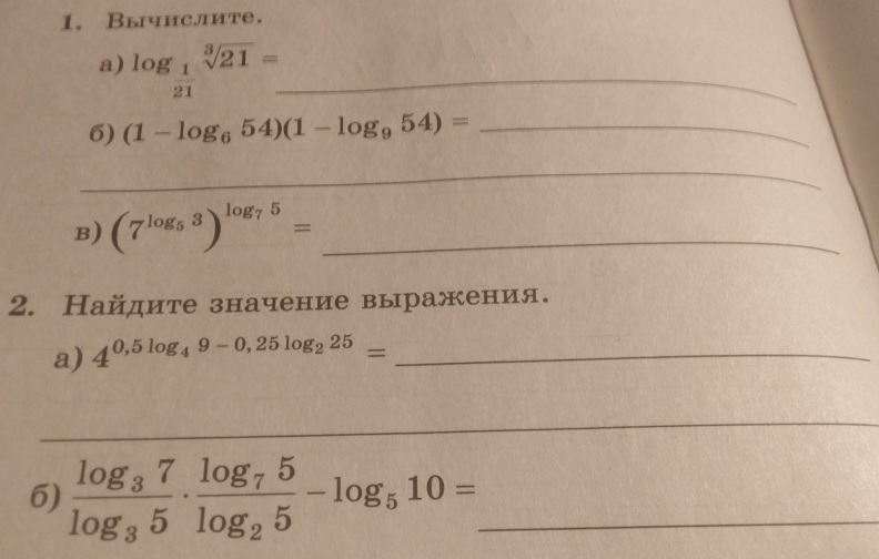 в) (7^Log_5 3) ^(Log_7 5) = (7^Log_7 5)^(Log_5 3) = 5 ^(Log_5 3) =3.