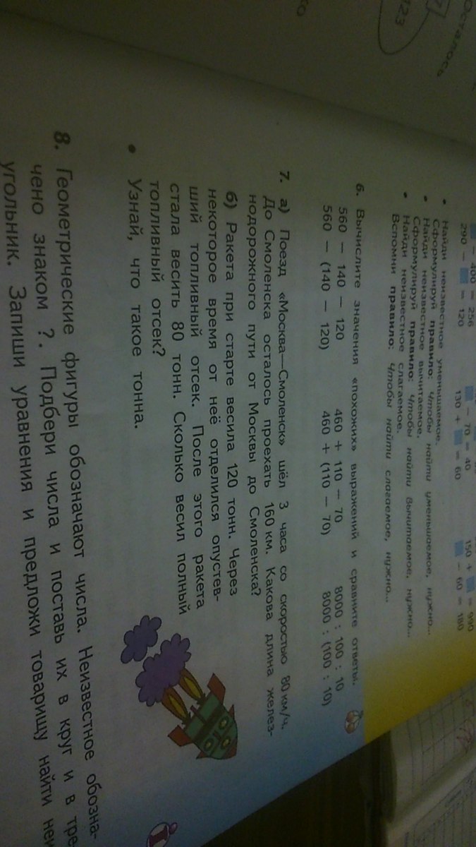 7 а) Поезд "Москва-Смоленск" шёл 3 часа со скоростью 80 км/ч. До Смоленска осталось проехать 160 км. Какова длина железнодорожного пути от Москвы до Смоленска?