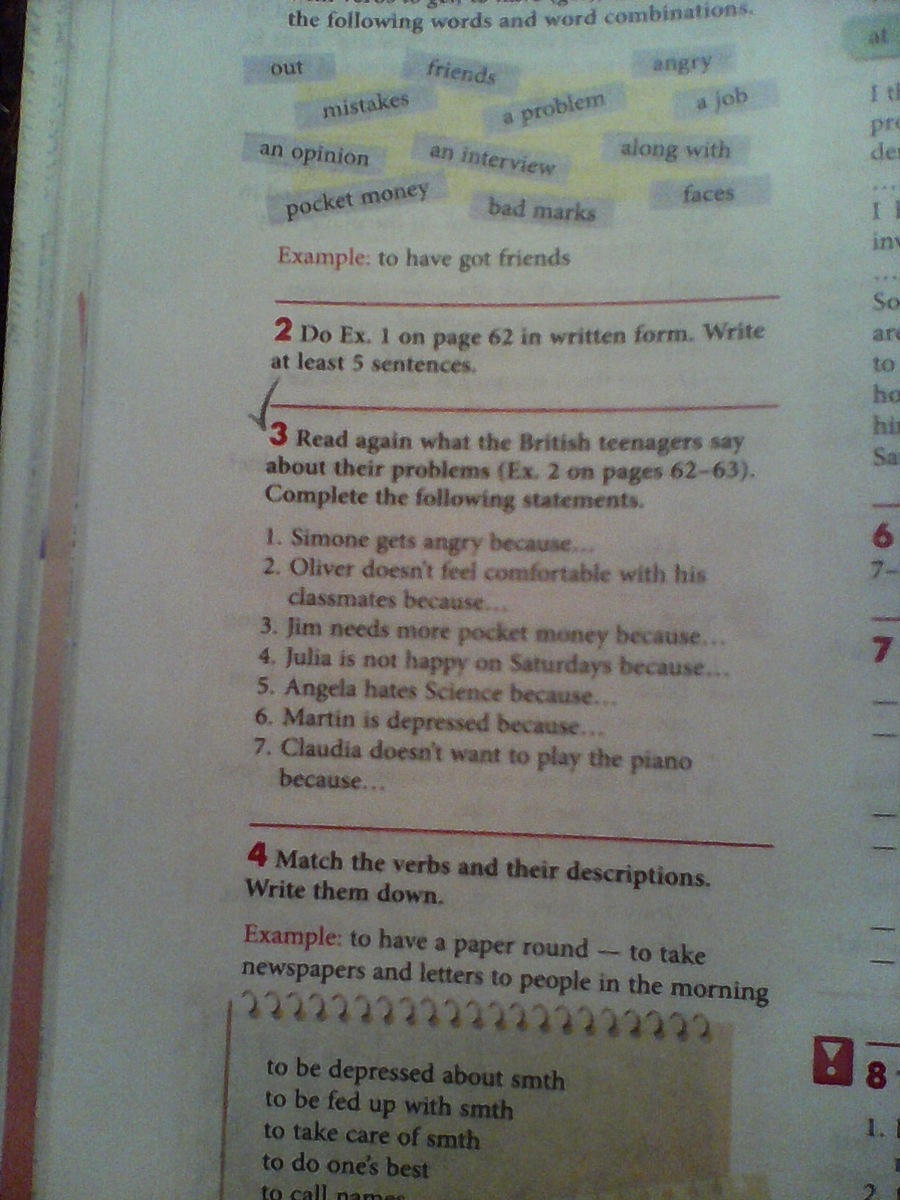 3. прочитайте снова что британские подростки говорят об их проблемах. (упр. 2,стр 62-63) заполните следующие выражения.