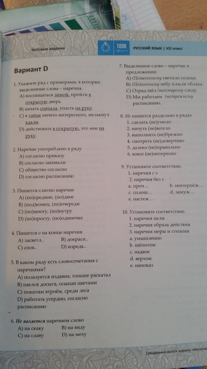 D, B, D, A, D, C, A, 2, 1-а,c,e.2-d,b, 1-a,e 2- b,d 3-c. Всё вроде)