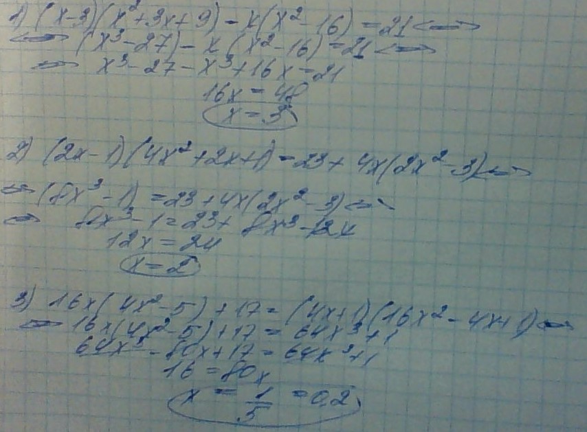 1) (x-3)(x"+3x+9)-x (x"-16)=21 ("-это во 2-ой степени