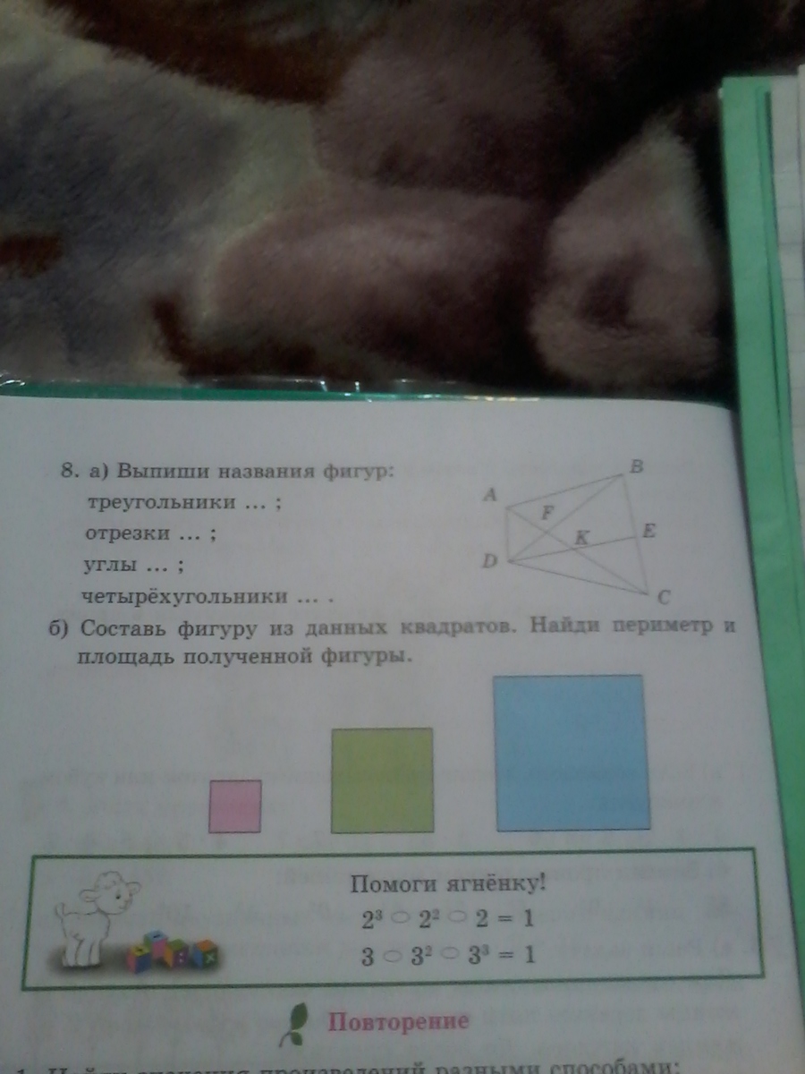 составь фигуру из трех квадратов первый квадрат=1см второй=2см третий=3см найди периметр и площадь полученной фигуры