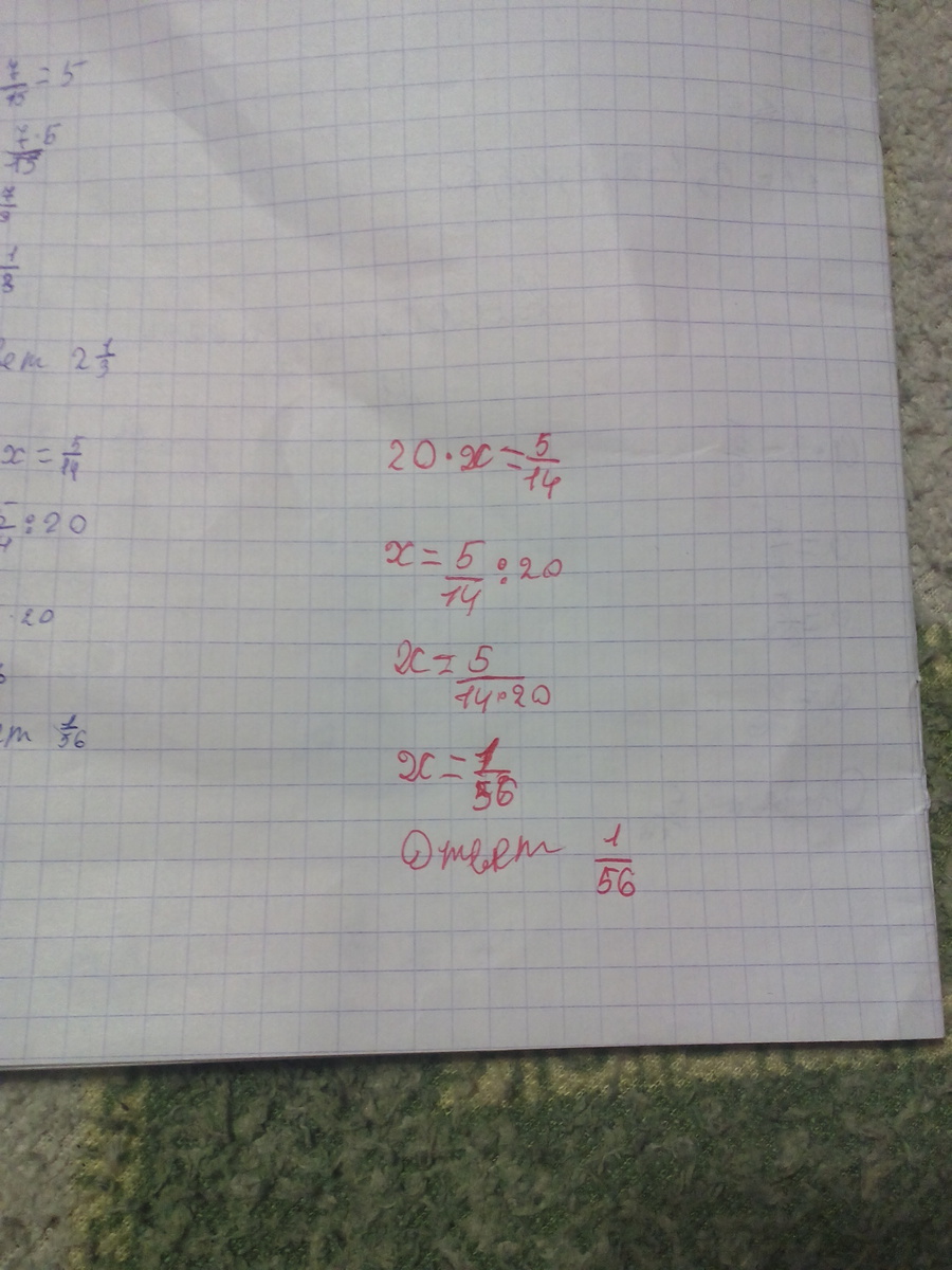 20*х=5/14, х=5/14*1/20, х=5/280, х=1/56