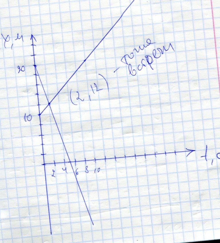 1. Вдоль оси OX движутся два тела, координаты которых изменяются согласно формулам: х1=20-4t и x2=10+t. Как движутся эти тела? В какой момент времени эти тела встретятся? Найдите координату точки встречи. Задачу решить графически.