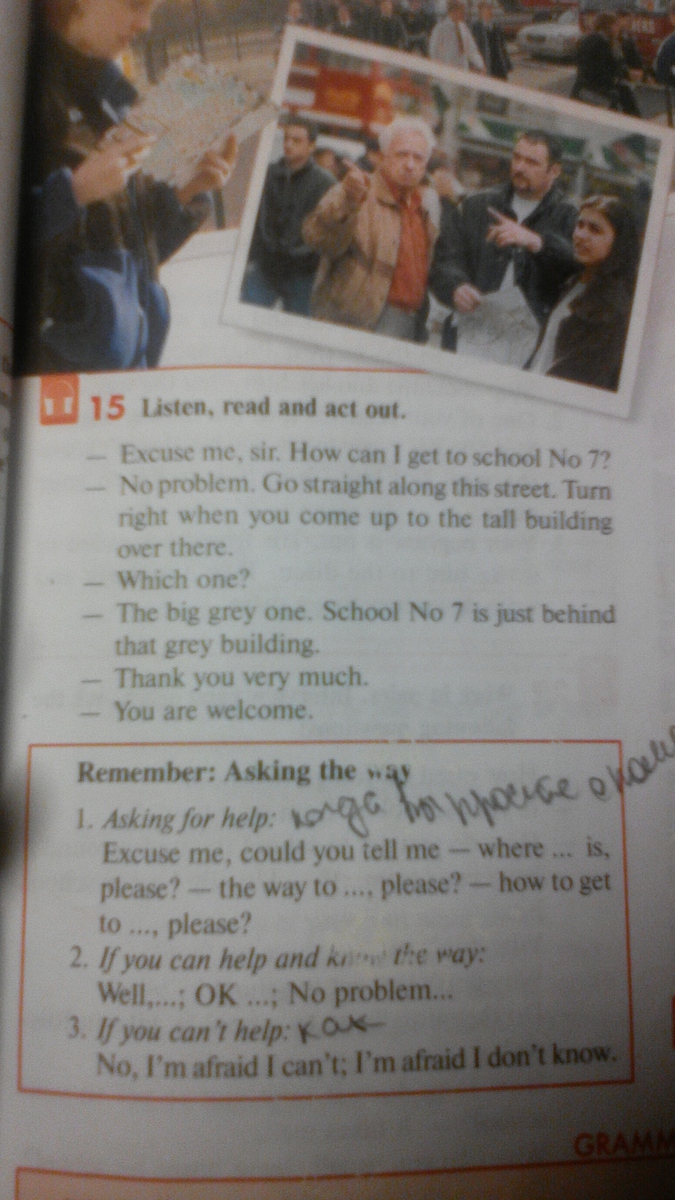 2 Не проблема.Иди прямо вдоль этой улицы .Когда ты будешь рядом с высоким зданием , поверни на право.
