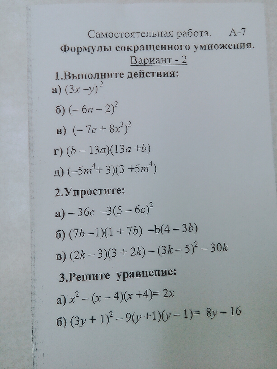 2. 3y² + 1 - 9(y² + y - y - 1) = 8y - 16