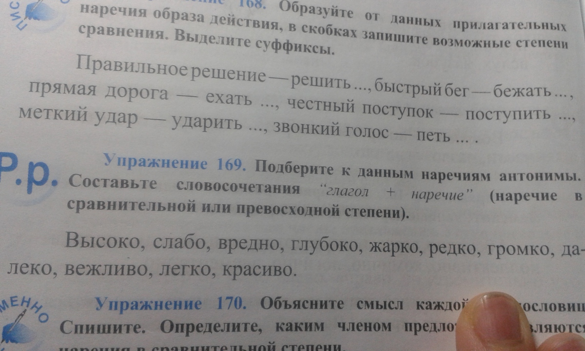 Летать выше, скатиться ниже; заниматься слабее, играть сильнее; быть вреднее, нырять глубже, светить жарче, питаться чаще, петь громче, ехать ближе, выражаться вежливее, работать тяжелее, рисовать красивее