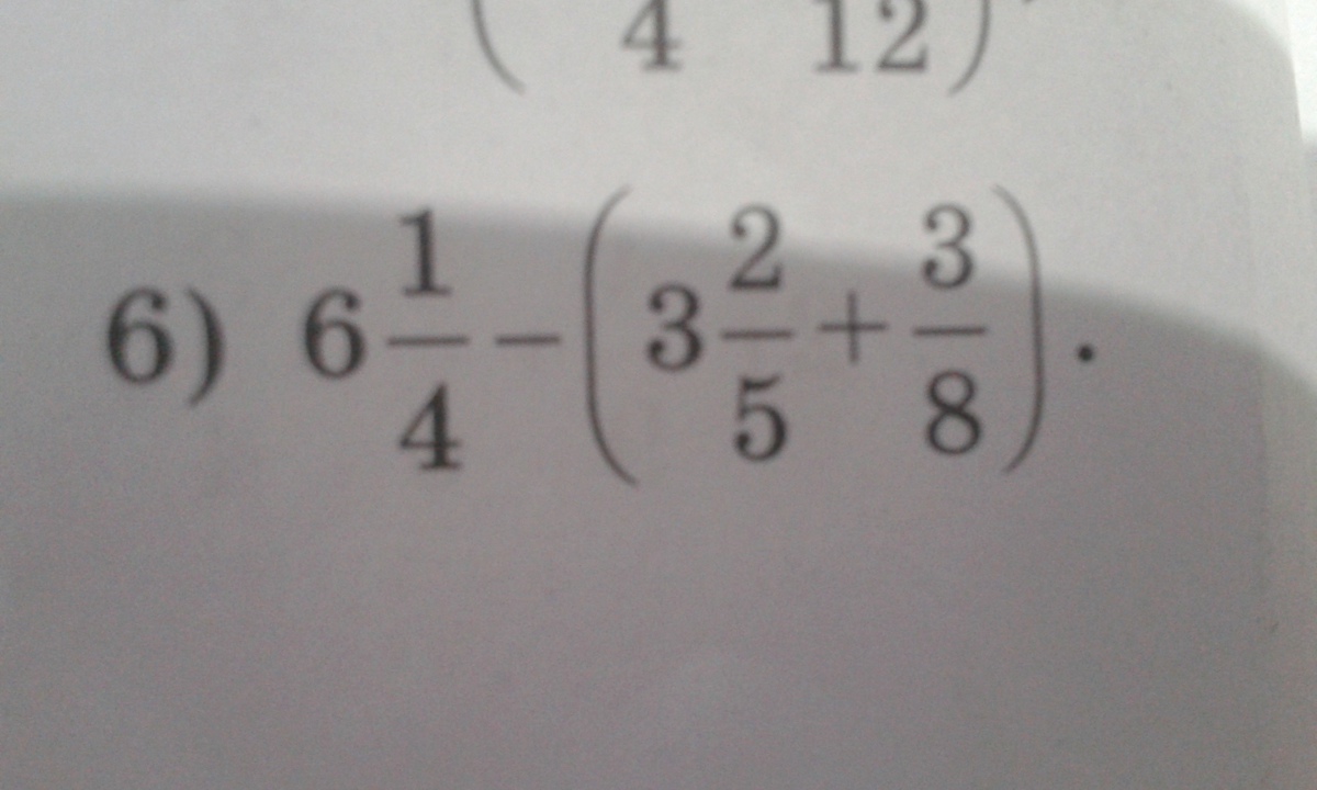6 1/4 - (3 2/5 + 3/8) = 25/4 - (17/5 + 3/8) = 25/4 - ((136+15)/40) = 25/4 - 121/40 = (250-121)/10 = 129/10 = 12 9/10