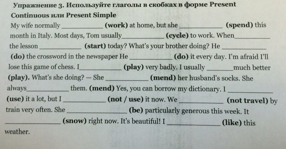 Works, spends, cycles, starts, does, do, play, play, mends, use, don't use, don't travel, is, snows, like