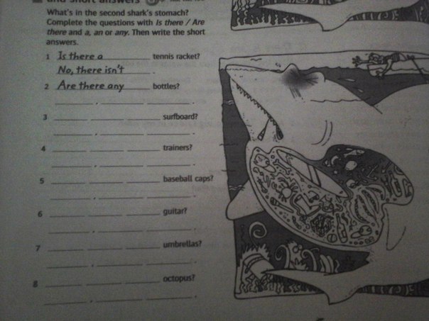 7. Are there any umbrellas? No, there are't. Umbrella - зонт мне плохо видно и кажется их нет там