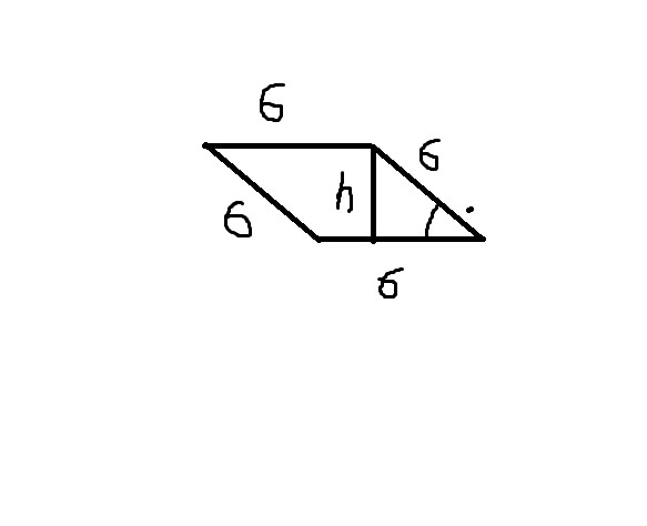 Площадь ромба равна a*h. a*h =18⇒ h=18/a = 18/6 = 3 см. В прямоугольном треугольнике гипотенуза равна 6 см, а катет 3 см.Значит противолежащий угол 30°. ( на рисунке он выделен.)