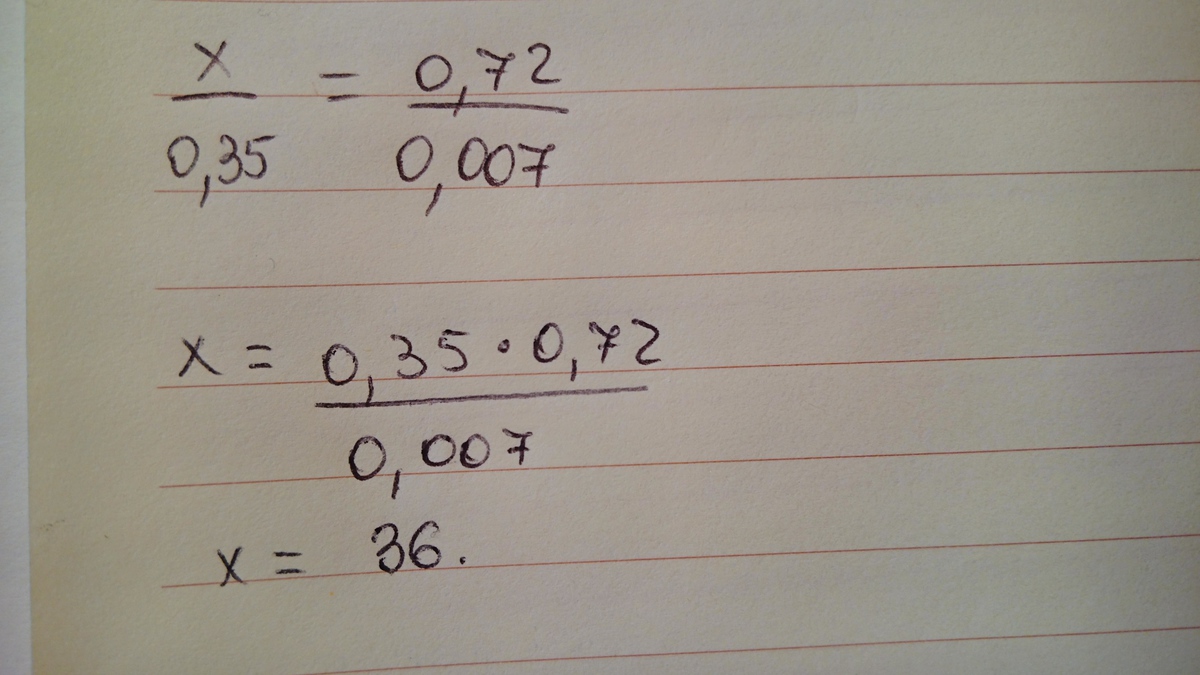 Можно составить в виде пропорции, и получится ответ 36