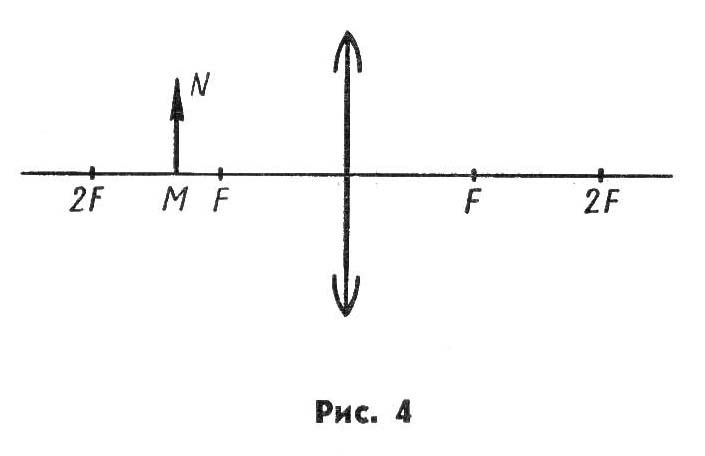 1)На рисунке показано положение главной оптической оси линзы, ее главных фокусов и предмета MN. Какое изображение предмета получится?