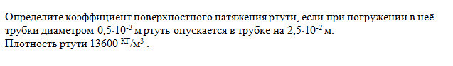 d=0,5*10^-3 м, h=2,5*10^-2 м, ρ=13600 кг/м³.