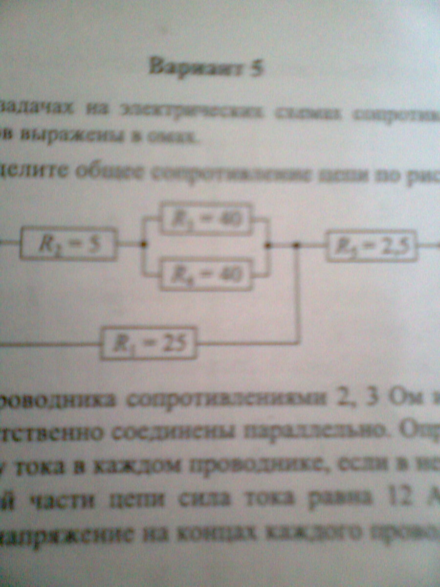 Необходимо найти общее сопротивление цепи. Ниже даю фотку задания (правда на телефон), будет понятно как они расположены. Спасибо!