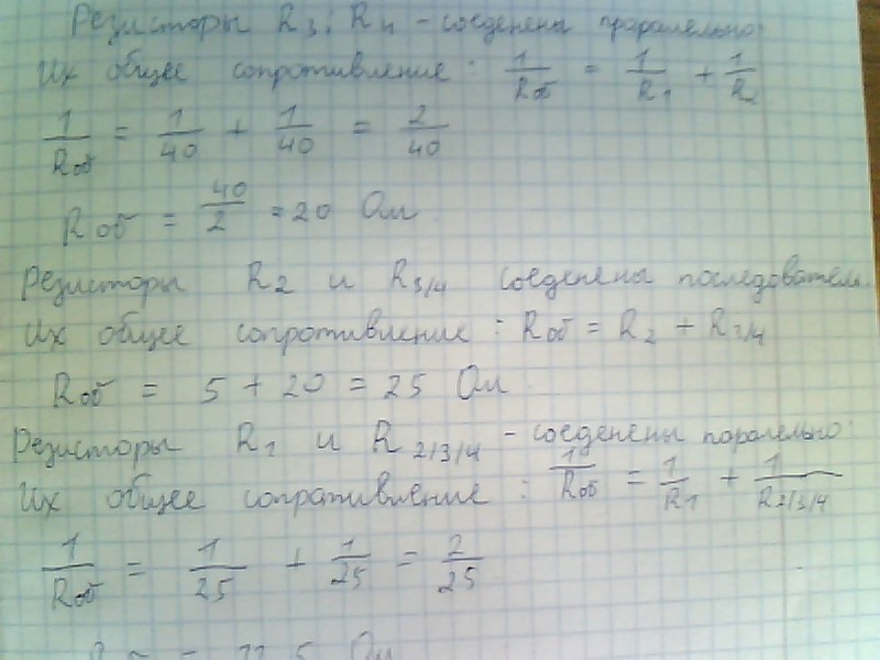 R(2) = R2 + R(1) = 5 + 20 = 25 Ом