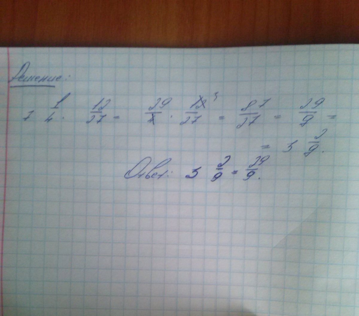 7 1/4*12/27=29/4*12/27=87/27(числитель и знаменатель сокращаем на 3)=29/9=3 2/9