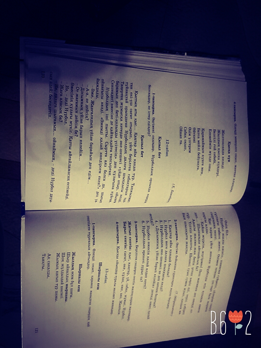 3. Нурболдын аке - шешеси далага шыкпауын отинди. Уйде отыр, ойынга барамын деп бети колынды усиресин деп айтып кеткен. 4 от жагамын деп естиди. 5. дауысын басендетти.