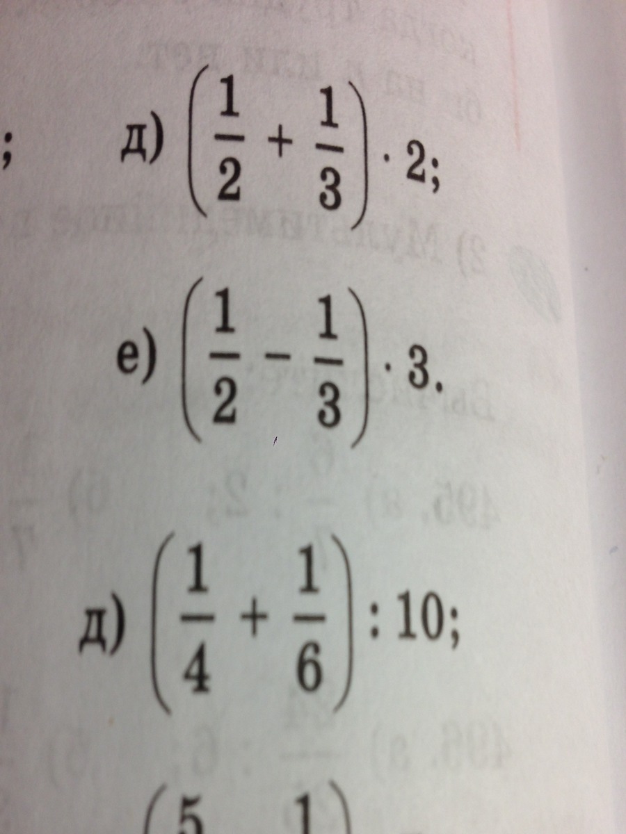 Д)(1/4+1/6):10=(3/12+2/12)*1/10=5/12*1/10=