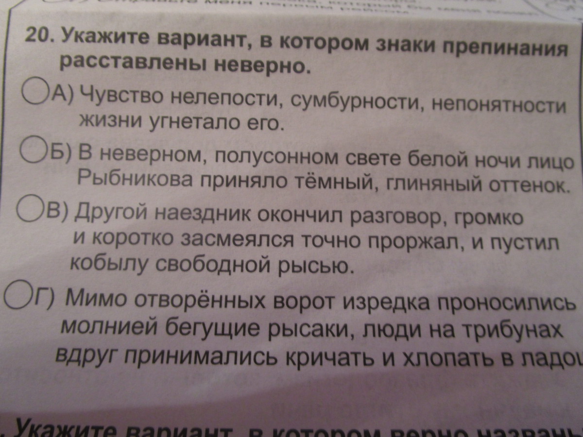Неправильно знаки препинания расставленный в предложении под буквой Б
