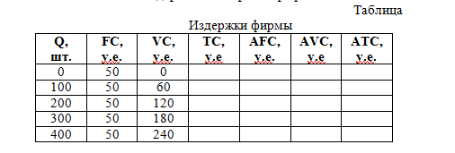 Таблица издержек фирмы во вложений.