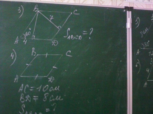 аналогично,BO=OD=4. Треугольники в ромбе будут равны по трем сторонам(3 признак рав-ва)По теореме о площади прямоугольного треугольника,она равна половине произведения его катетов, значит, площадь одного треугольника будет равно 5*4:2=10. Площадь ромба=10*4=40 кв.ед.