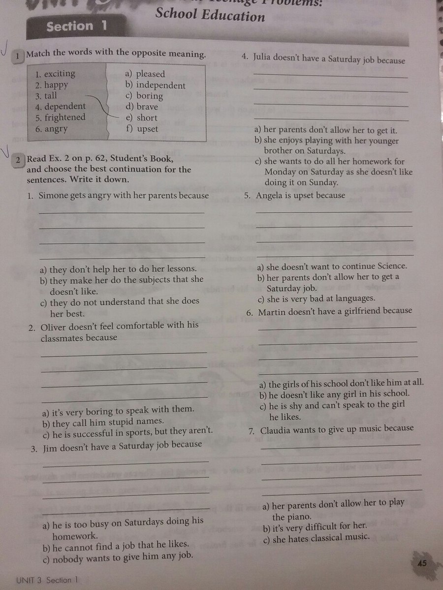 1c,2f,3e,4b,5d,6a. ...because they don't respect his/her independant