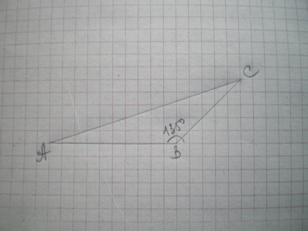 Берете транспортир и измеряете угол АВС, он равен 135 градусов.