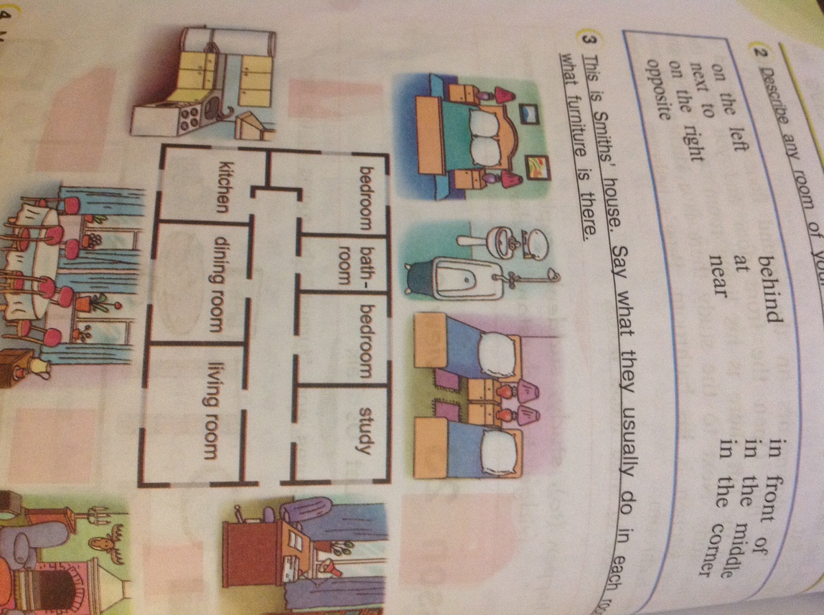 Помогите, плиз! Даю 30 баллов!!!!! Номер 3. Надо описать эту квартиру с выражениями из номера 2. ( on the left и тд) ну в смысле что где находится. Где какая комната.