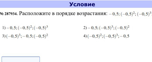 Верный ответ третий. (-0,5) в третьей = -0,125, потом -0,5 и потом (-0,5)во второй=0,25