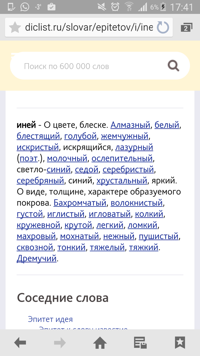 вот к слову иней. очень много эпитетов можно найти на этом сайте
