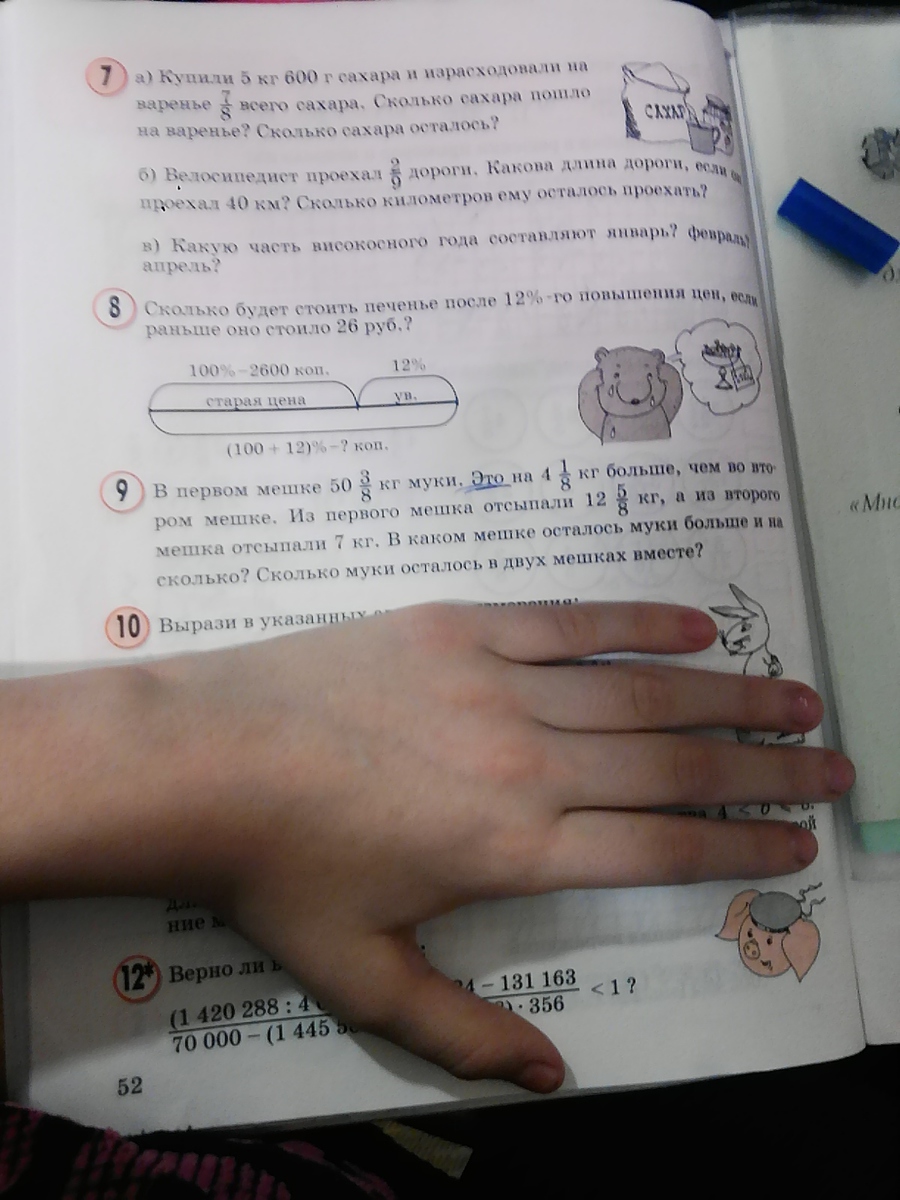 50ц 3/8- 12 5/8= 38ц 3/8- 5/8=37ц 11/8-5/8=37ц 6/8= 37ц 3/4кг осталось в 1 мешке